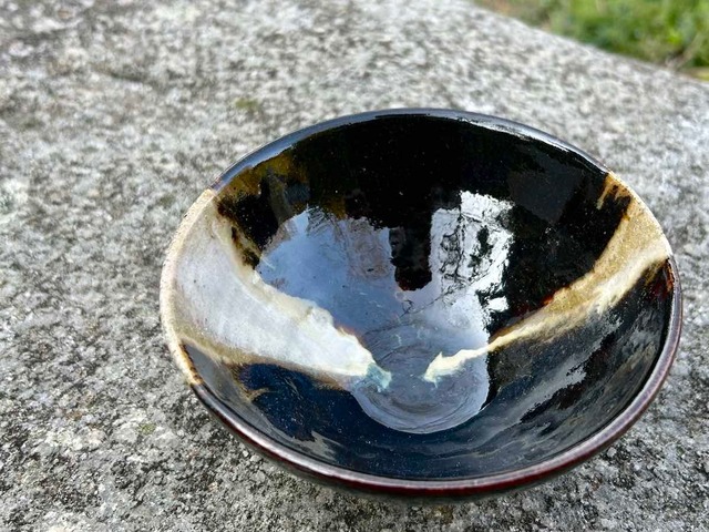 ご飯茶碗としても小鉢としても使える、便利な器です。 黒と白のコントラストがご飯や料理を入れた時にとても映えます。 竹灰の白と、飴釉の黒が焼成時に混じり合い、景色となりました。 ✳︎組物ではありません。一枚あたりの価格です。 横12cm×高さ5.7cm 電子レンジ使用可 釉薬の掛け方・色の出方はひとつひとつ違います。ご了承の上でのご注文をお願いします。 This original combination of glazes create a swirl of ivory, blues, and browns as they melted across the dish. ✳︎This is not a set. This is the price per piece. W12cm,H 5.7cm This dish is microwave safe. Please be aware that each dish has minor differences as they are individually handcrafted.