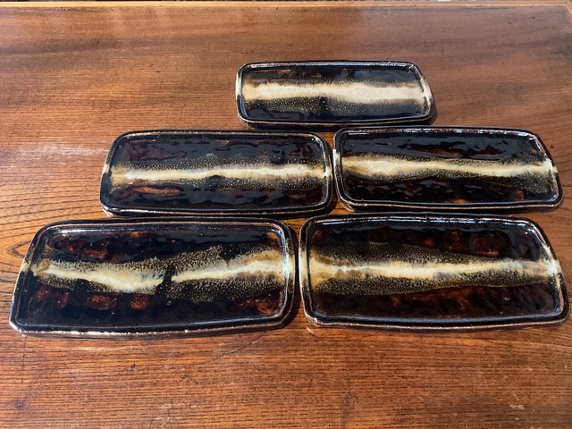 飴朝鮮唐津長方陶板(15.8cm)/Black chousen-Karatsu plate