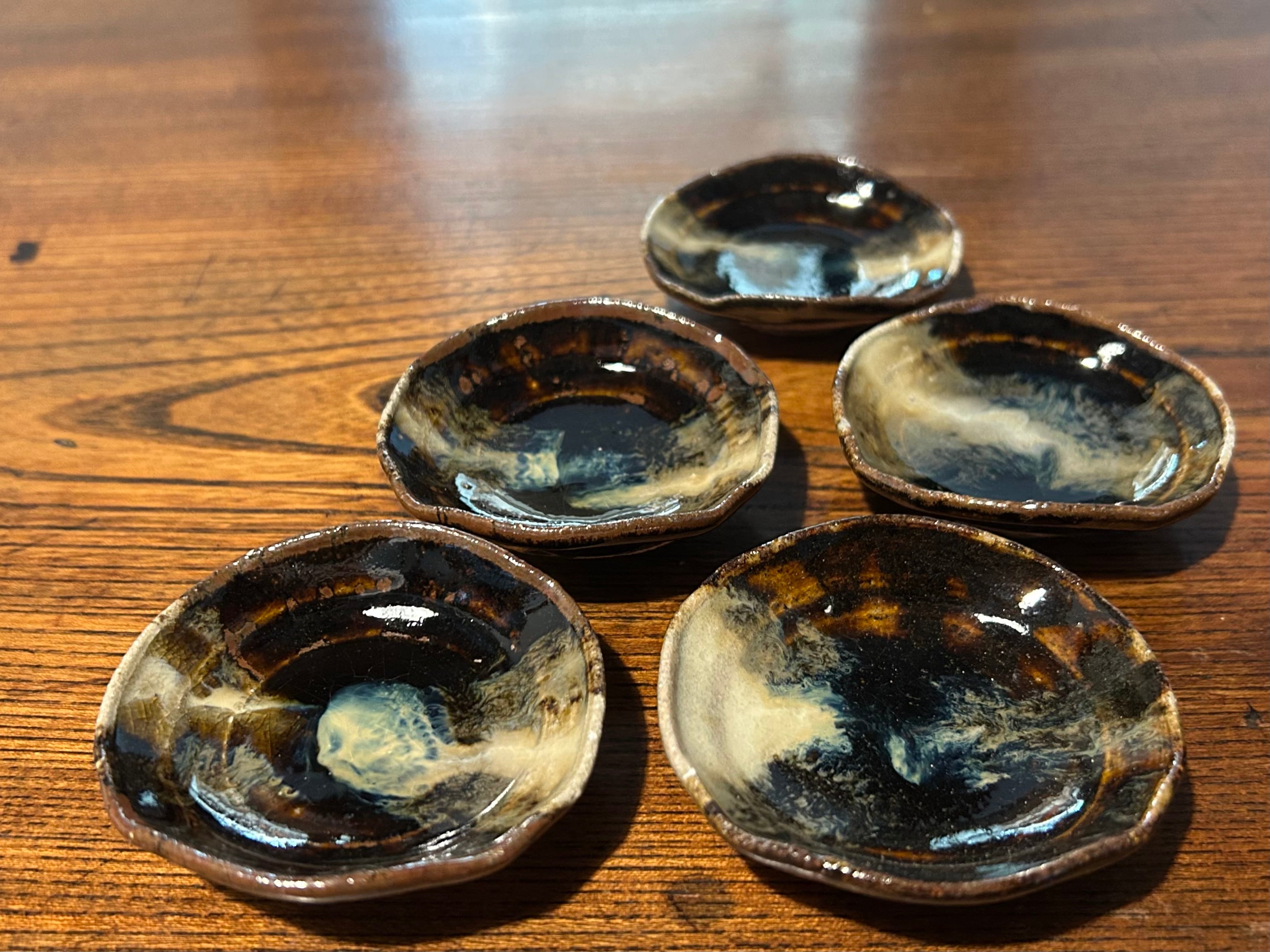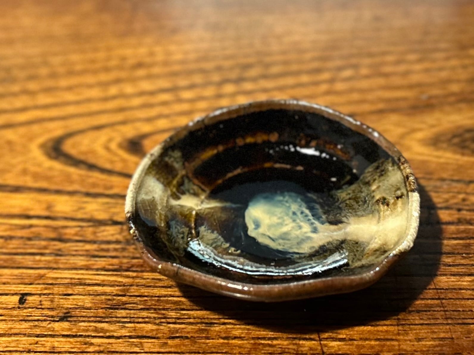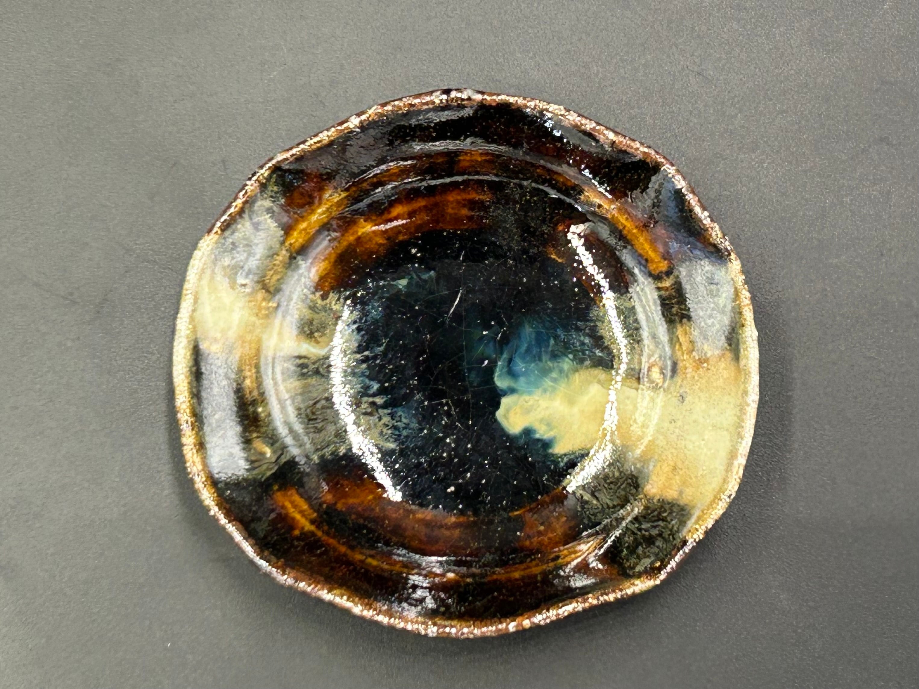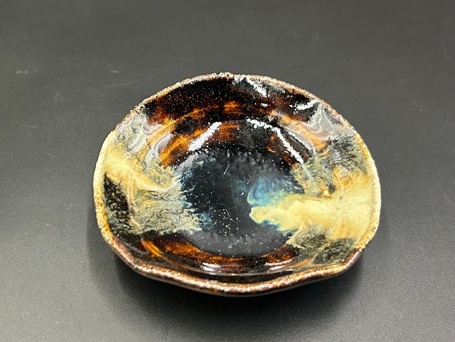 オリジナルの釉薬、飴朝鮮唐津(あめちょうせんがらつ)の豆皿です。