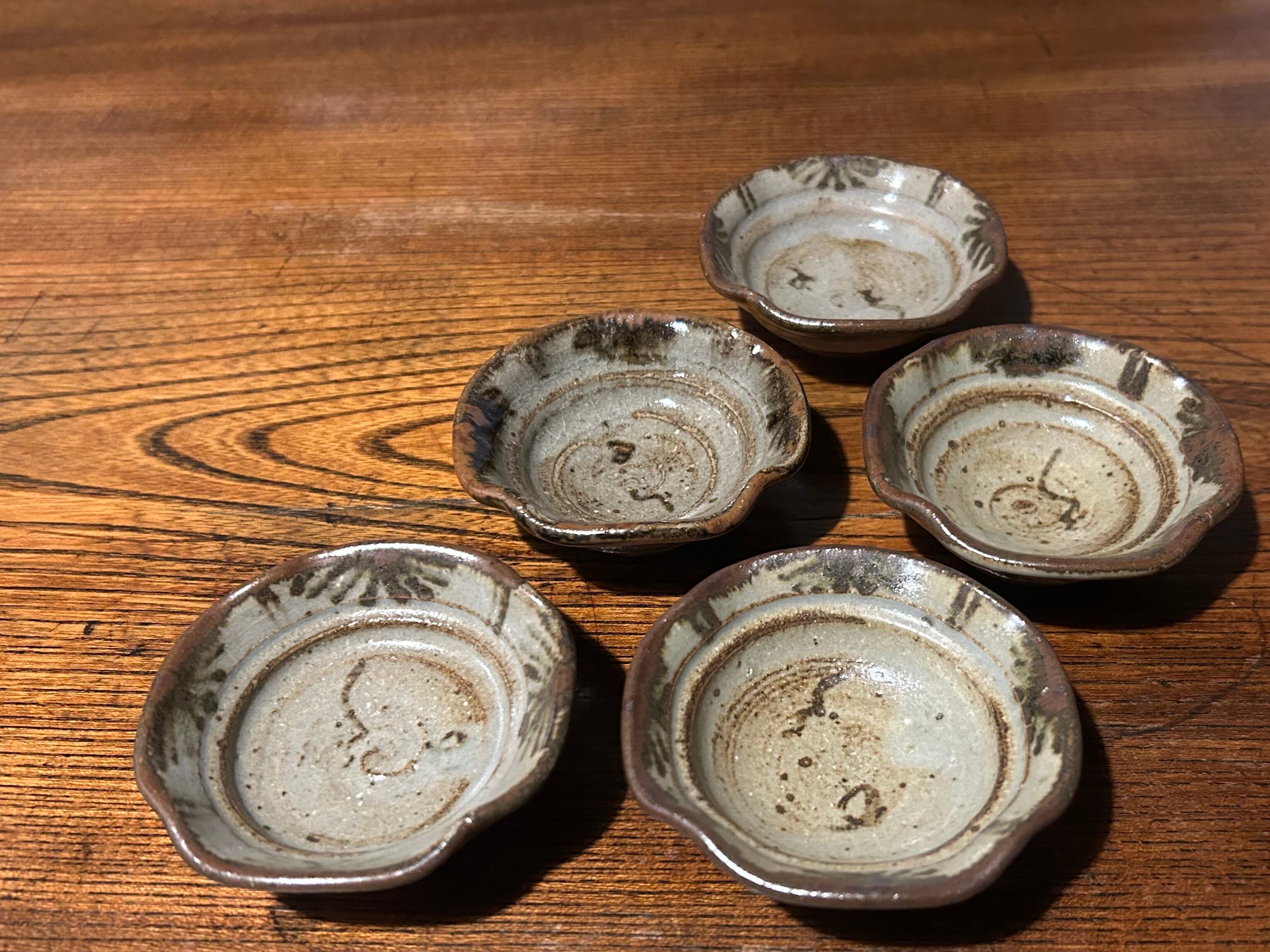 This small plate is decorated with iron underglaze, and can be used for small sides such as beans or pickles.
