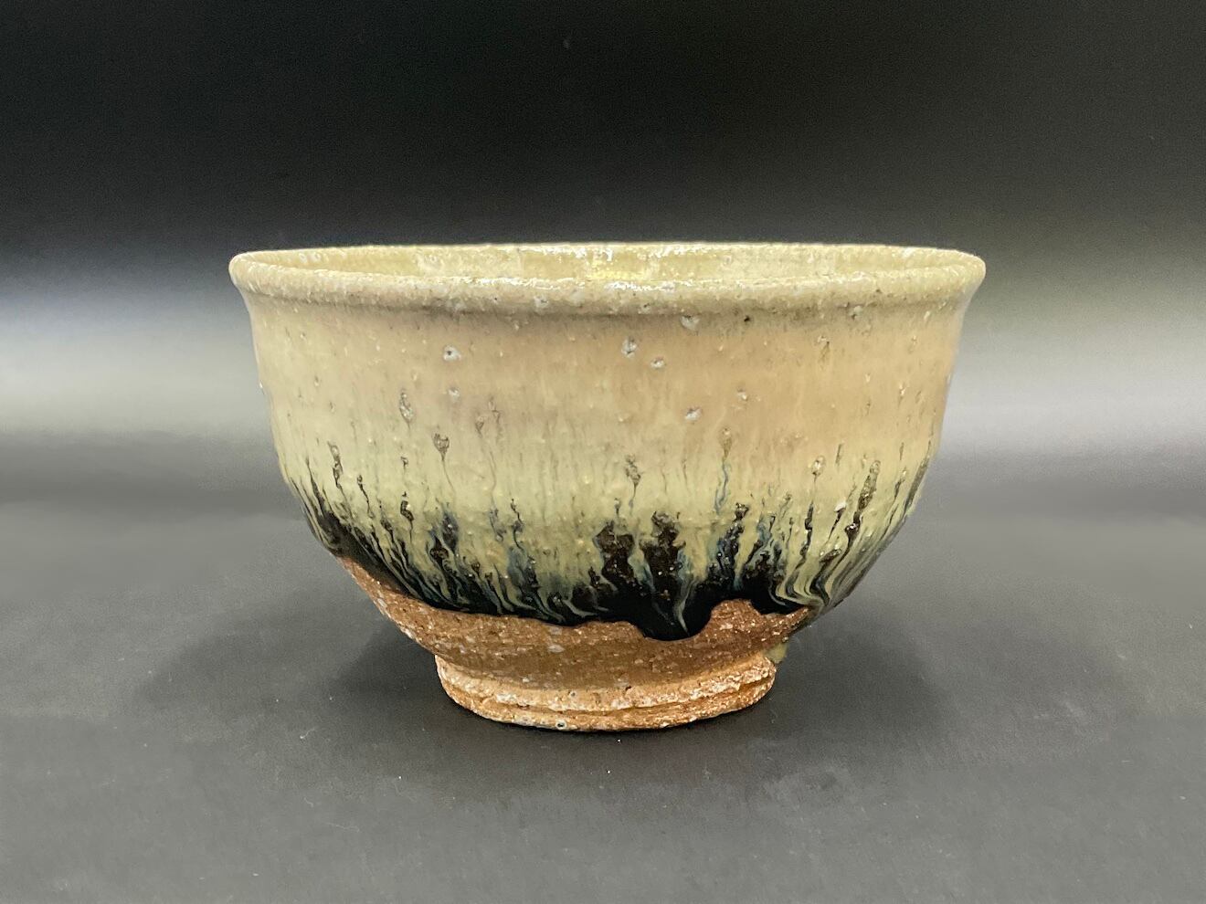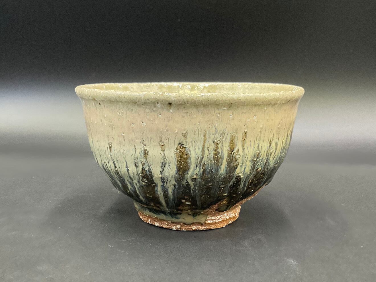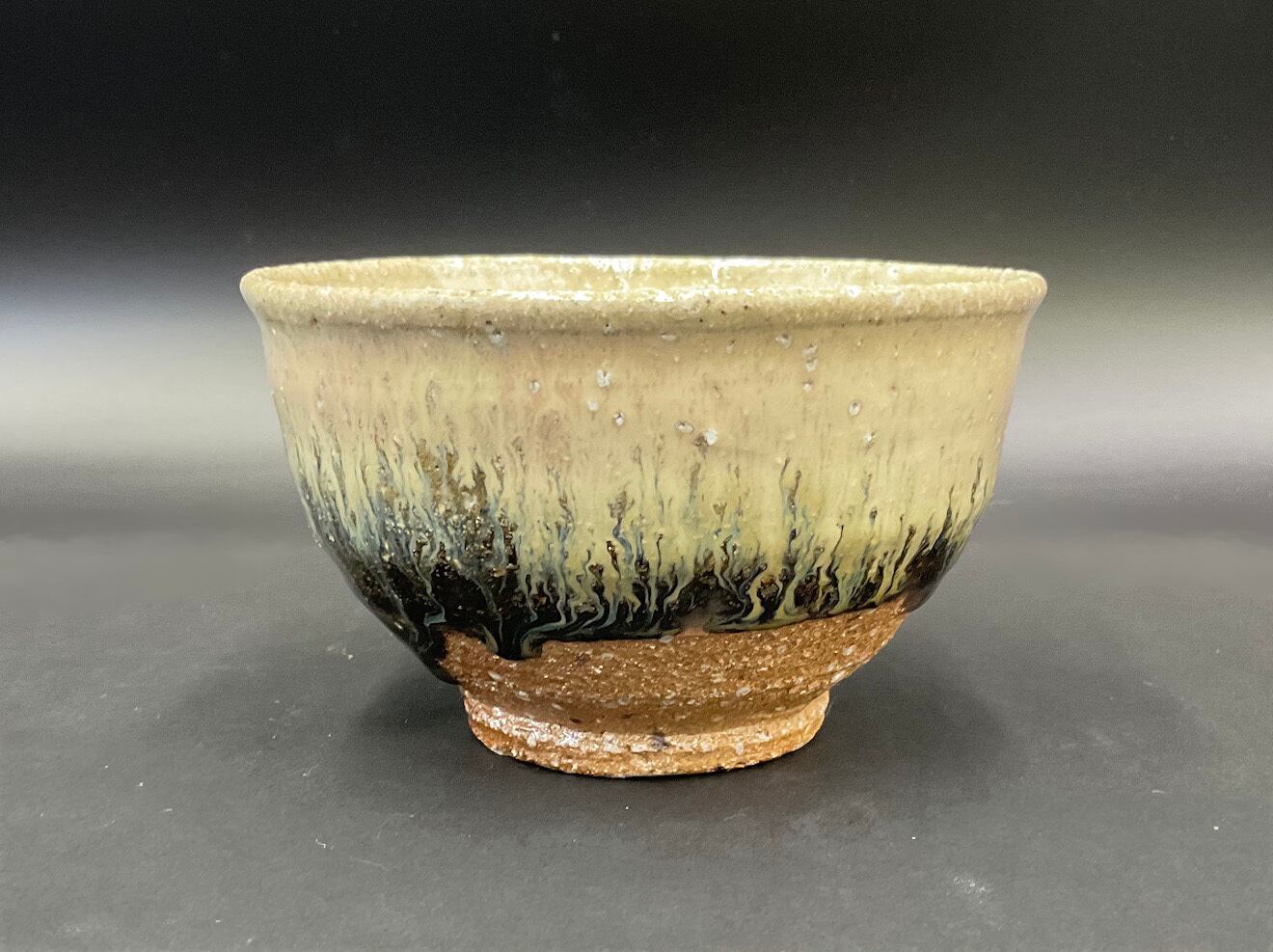 登り窯の火前で還元焼成した抹茶盌。