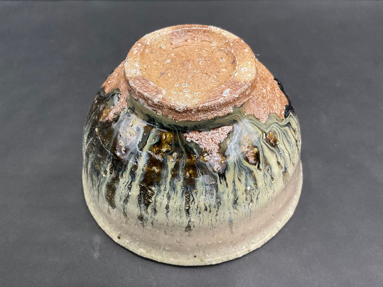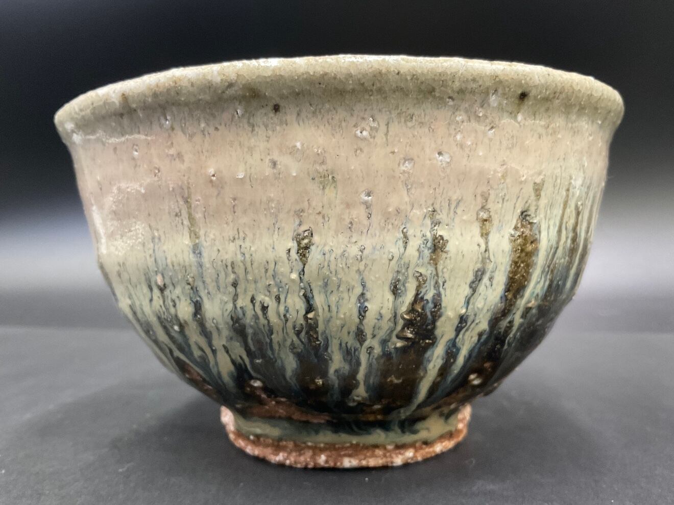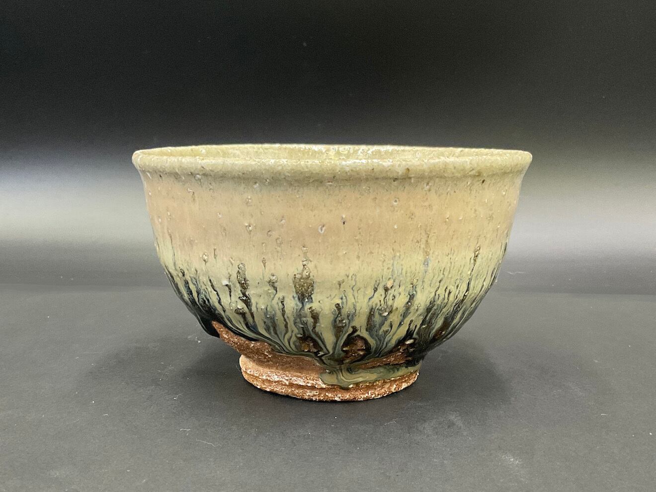 登り窯の火前で還元焼成した抹茶盌。