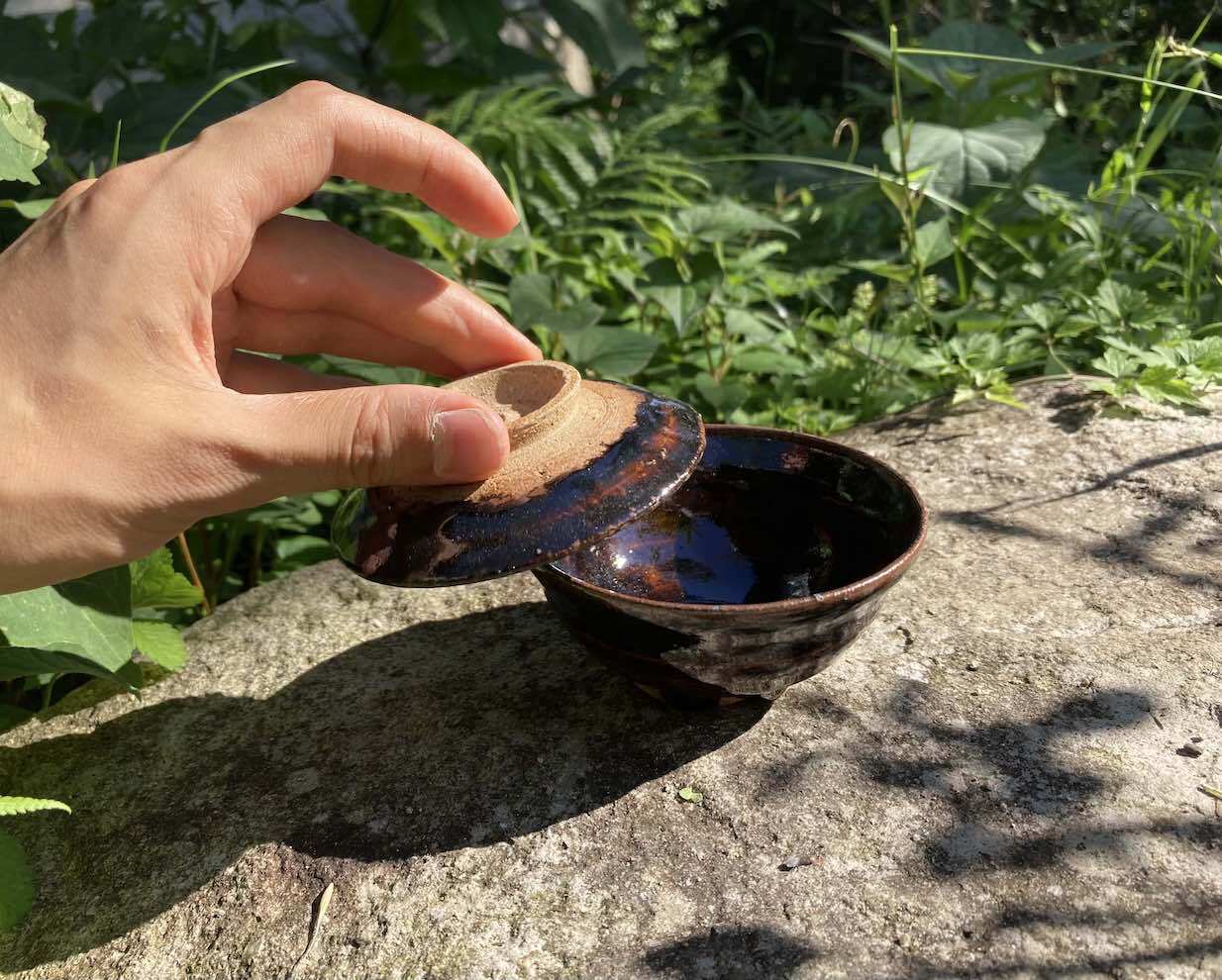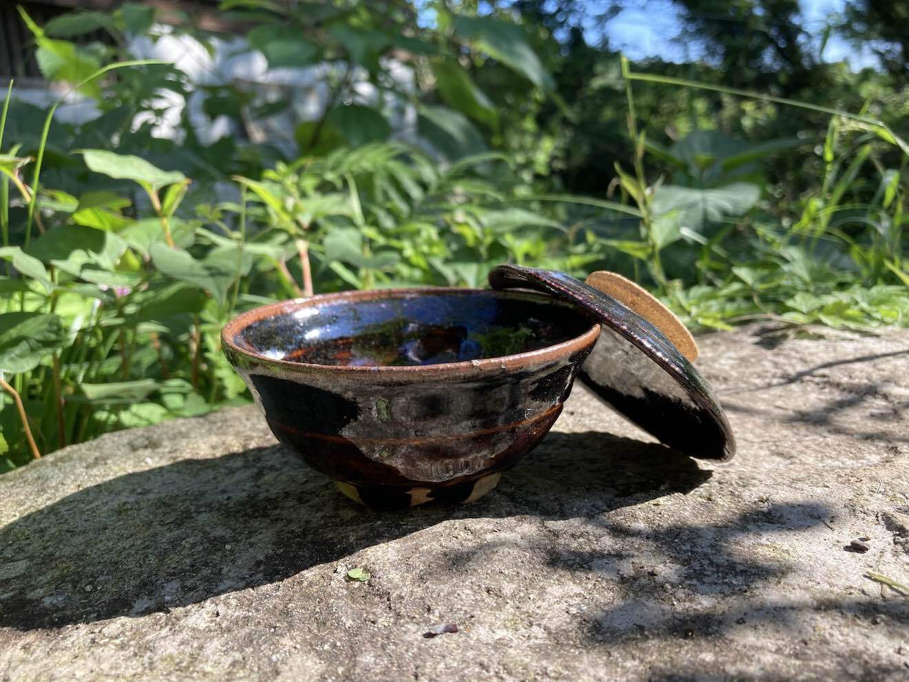 Small ame-glaze bowl with lid. For a small side dish or for an hors d'oeuvre.