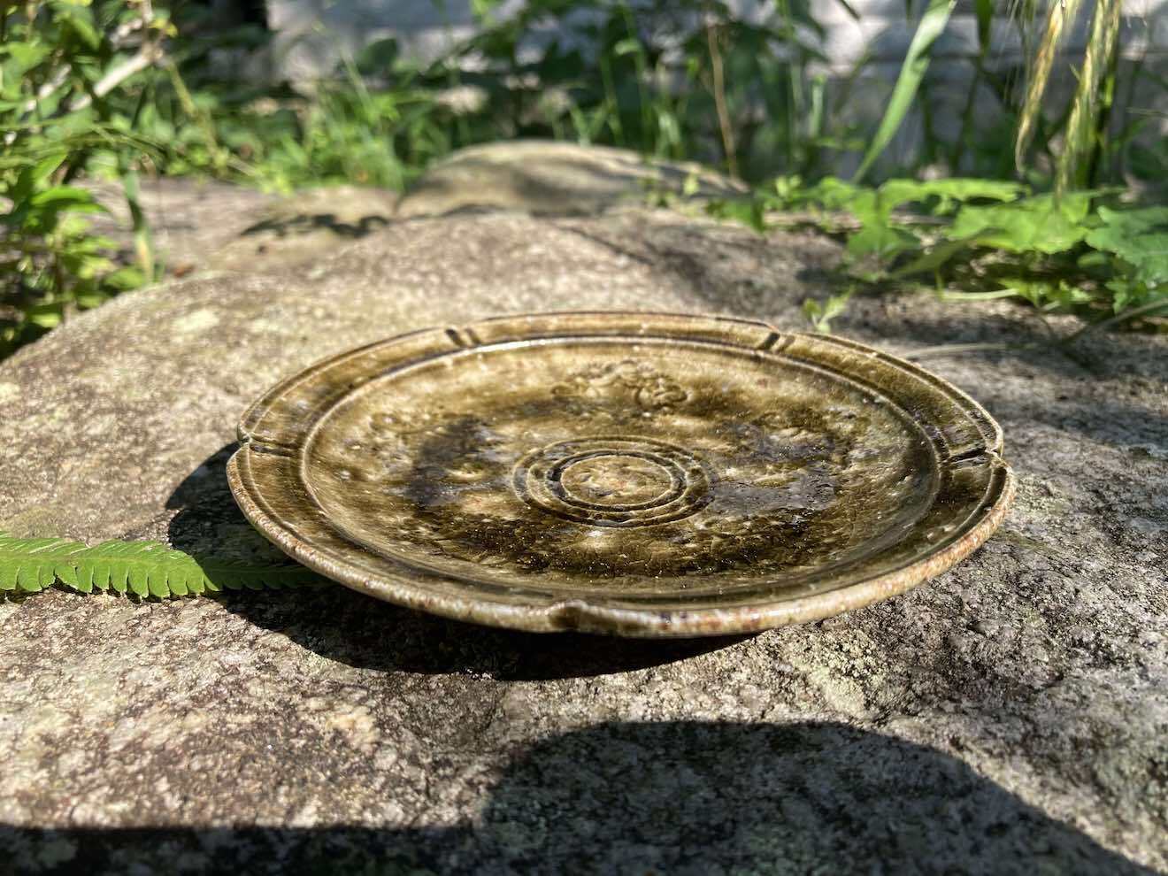 施した象嵌(ぞうがん/印花による模様)もこの釉薬の魅力を引き立てています。