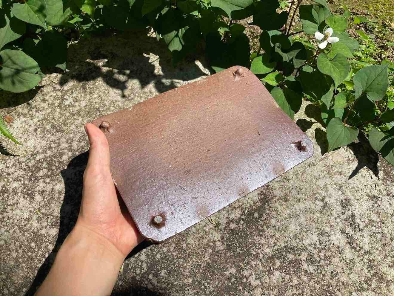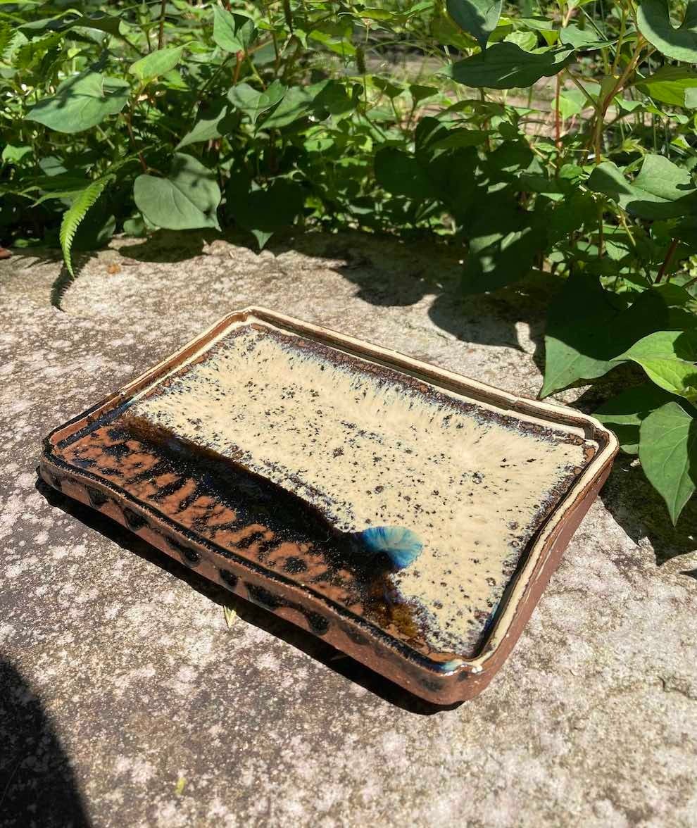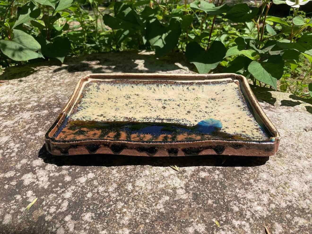 朝鮮唐津長方陶板/Chosen-karatsu rectangular dish with rim and feet