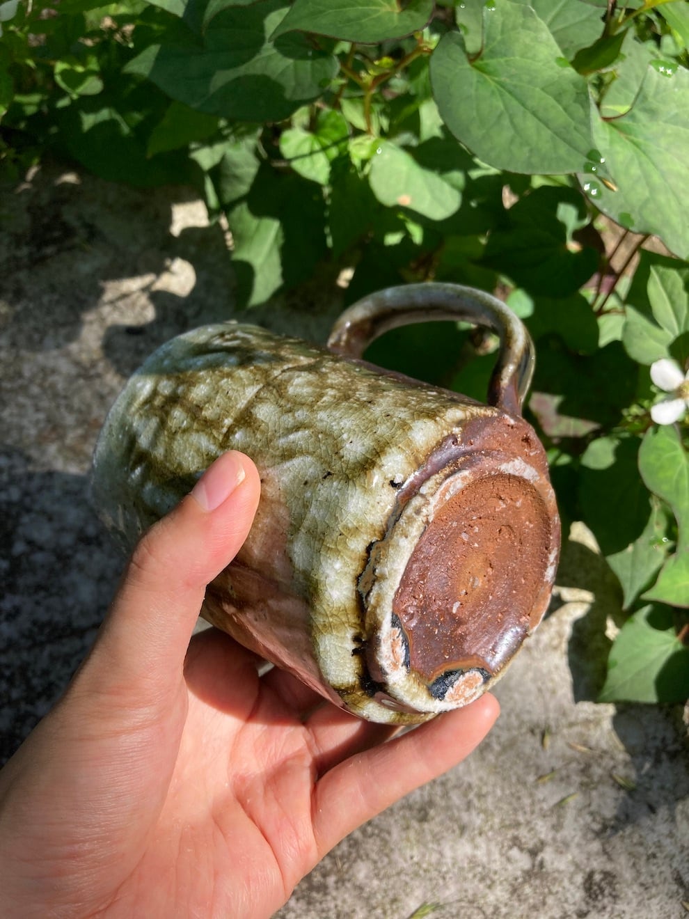 あまり灰が掛かっていない部分(茶色)との違いもおもしろく、表情豊かで飽きがきません。