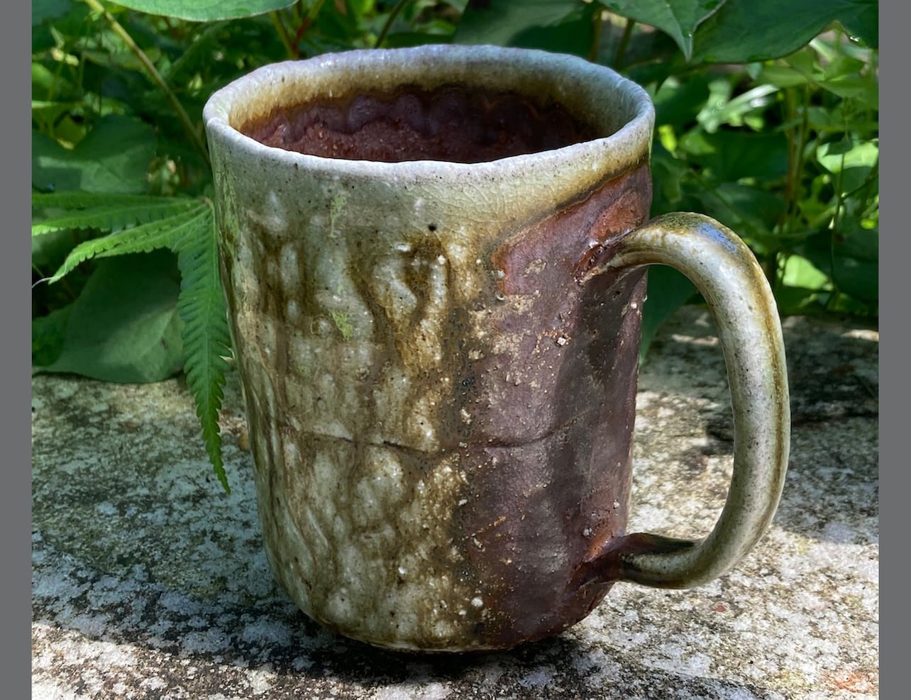 Anagama wood-fired beer mug with handle. The unique texture and color occurs naturally as a result of the ash that lands on the surface of the mug during the eleven day firing.