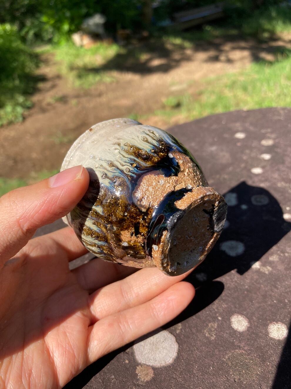 高温で溶けた釉薬が混ざり合い、綺麗な青が出ています。