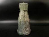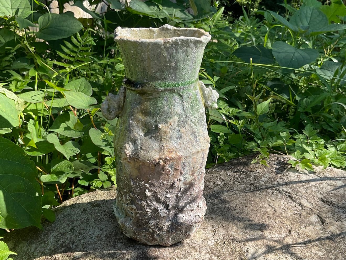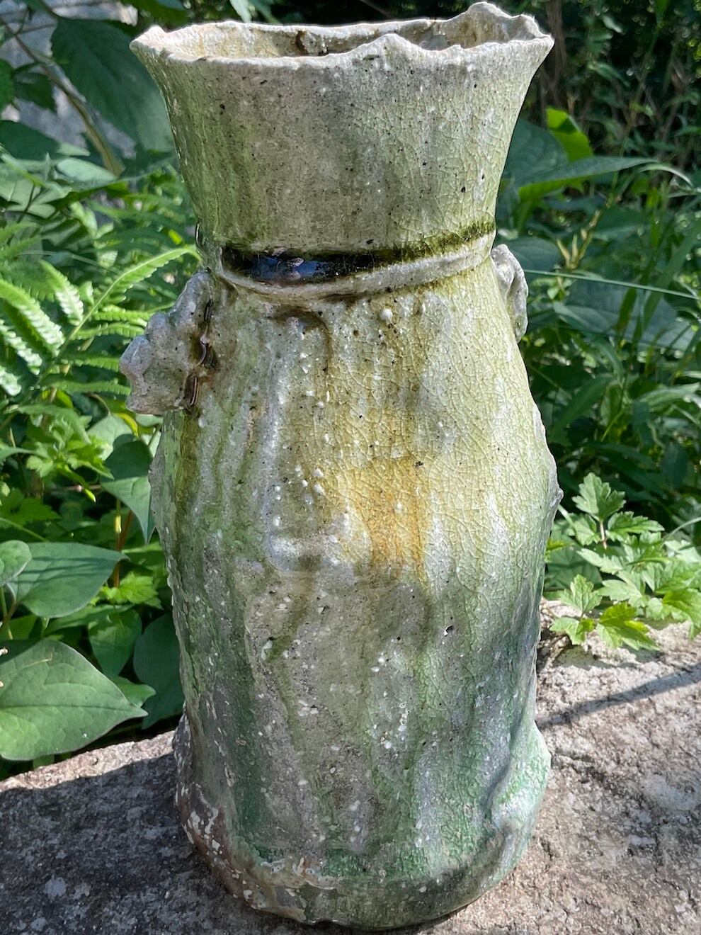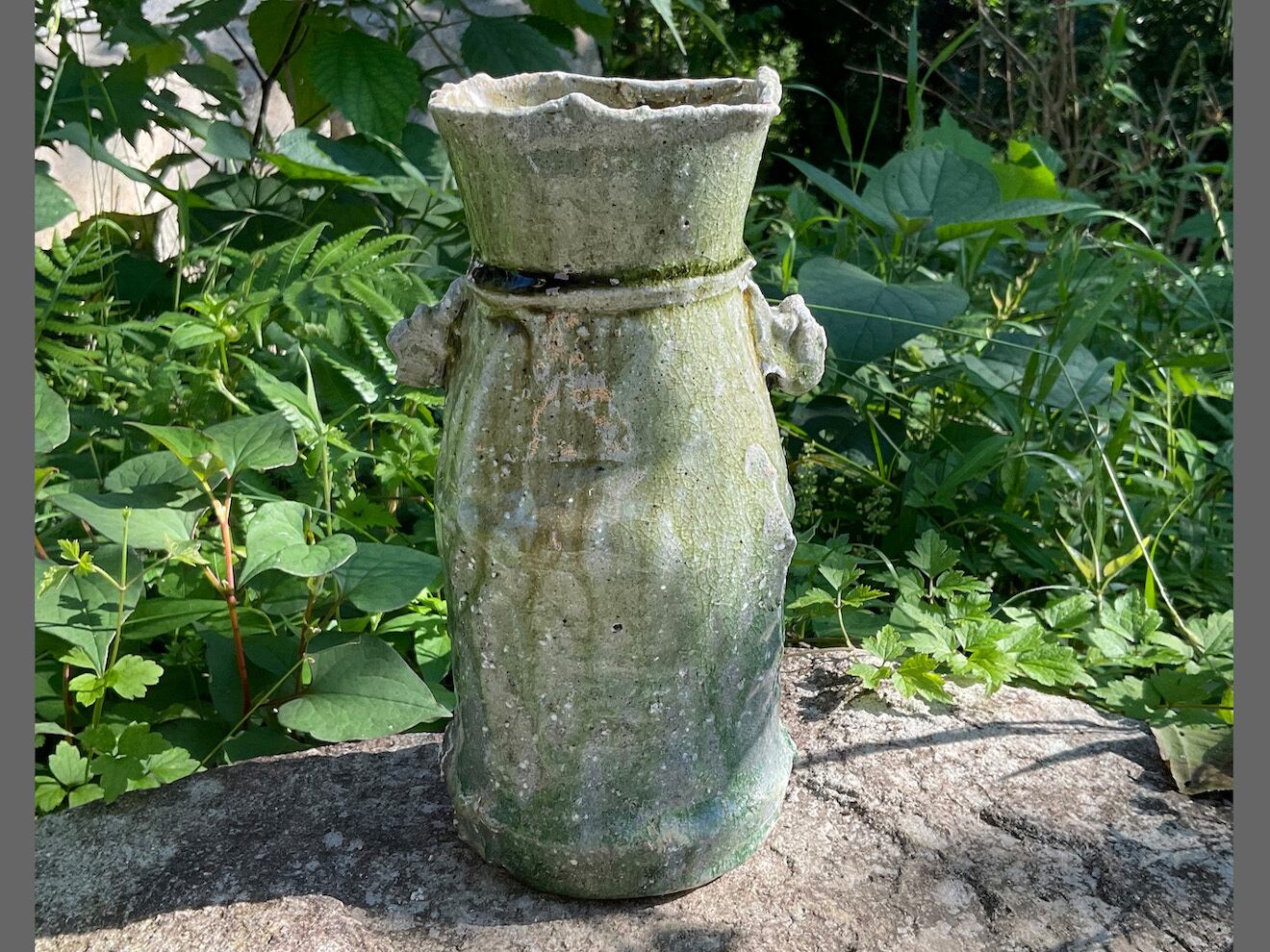 唐津灰被耳付花入/Anagama ash-glaze flower vase