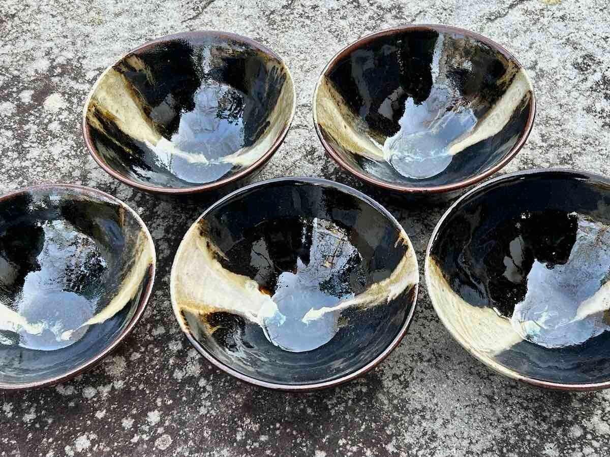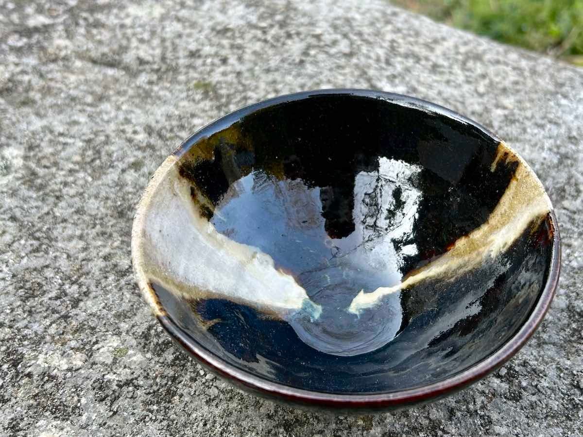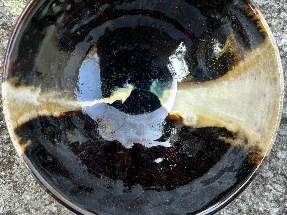 竹灰の白と、飴釉の黒が焼成時に混じり合い、景色となりました。