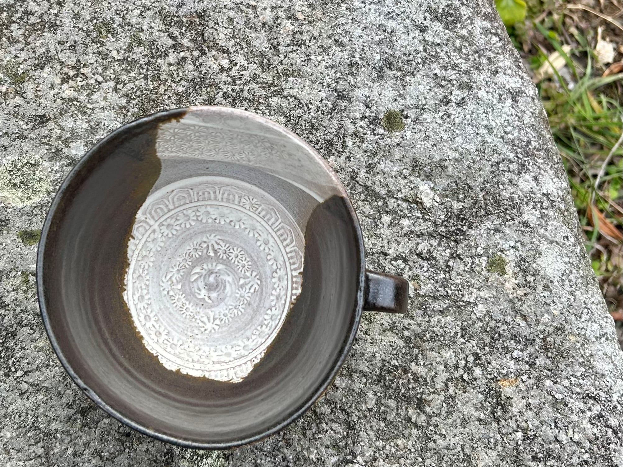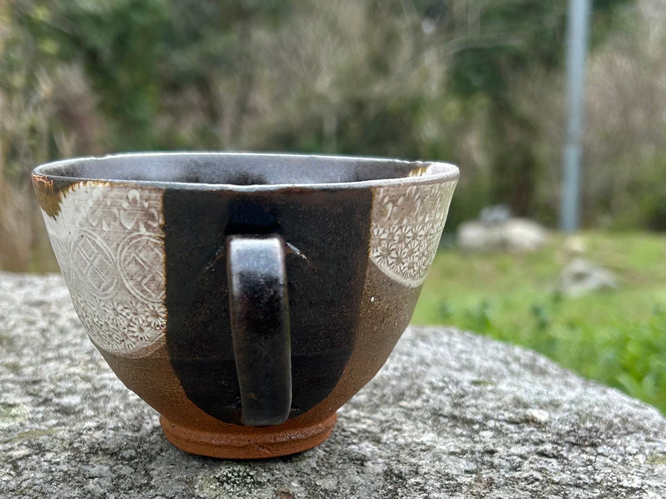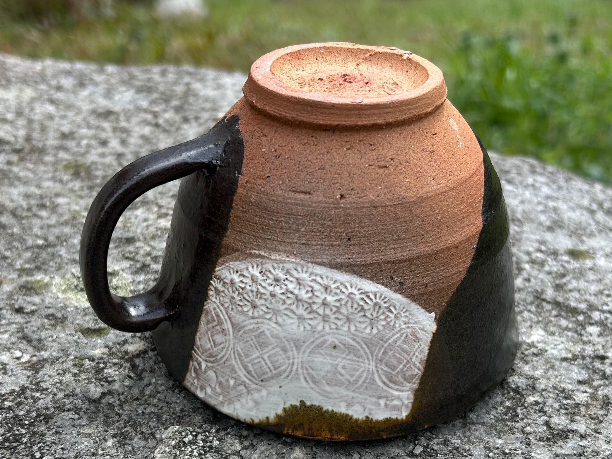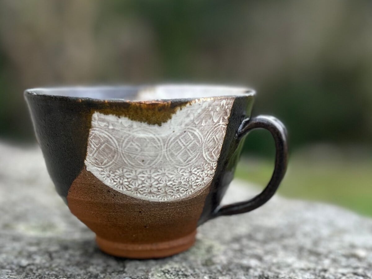 黒三島唐津カップ/Black mishima-karatsu mug with handle