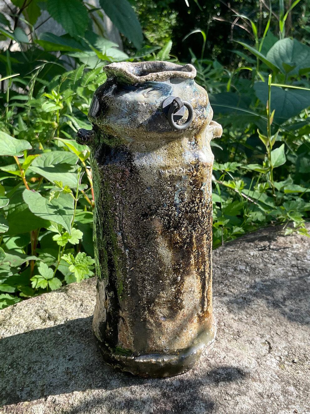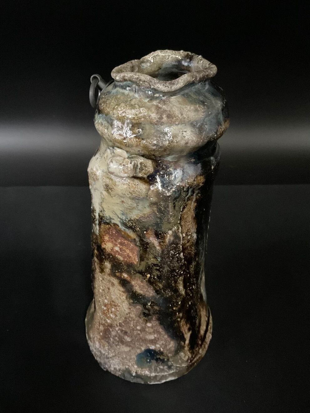 朝鮮唐津窯変耳付掛花入/Chosen-karatsu Yohen hanging flower vase