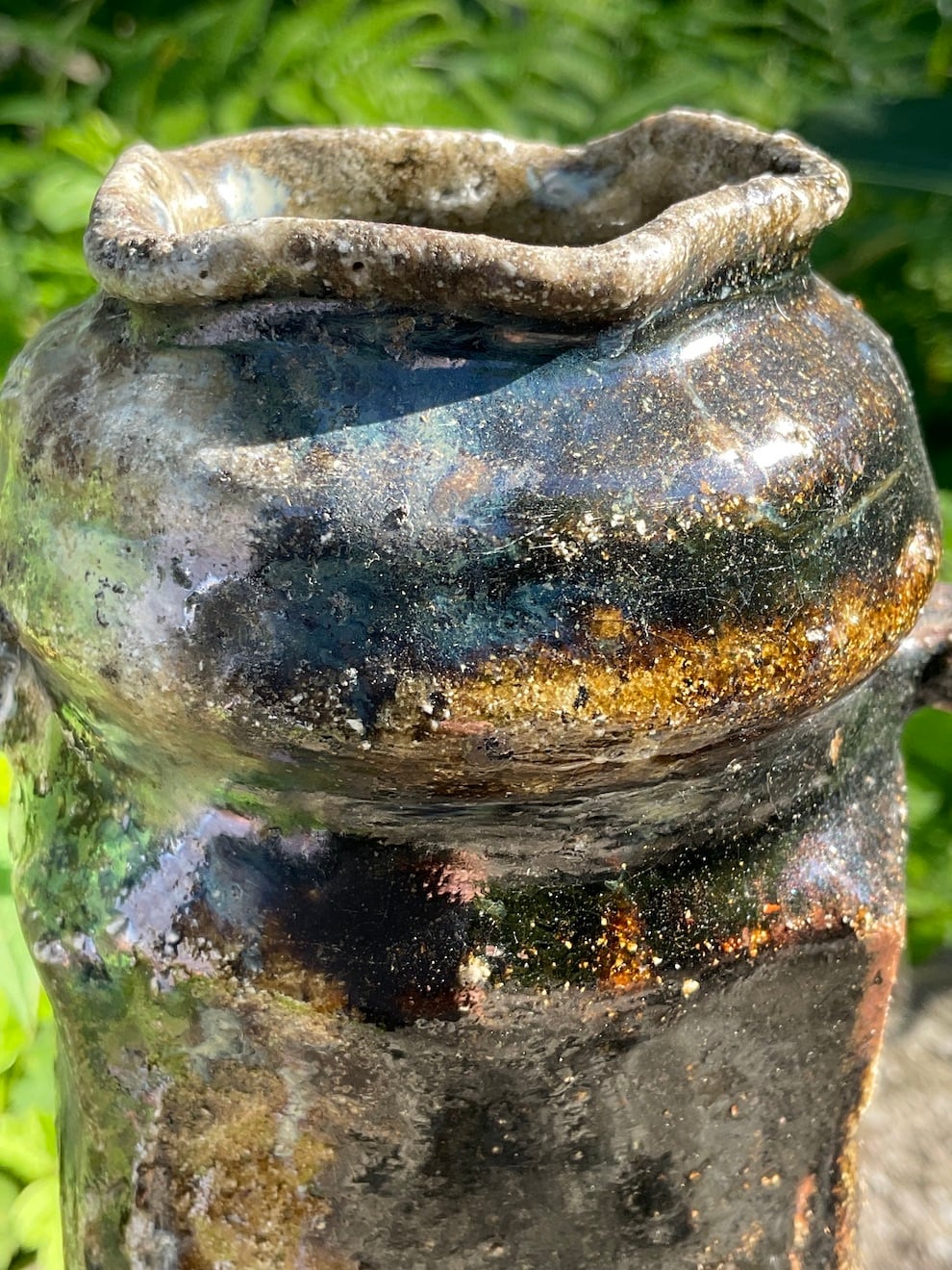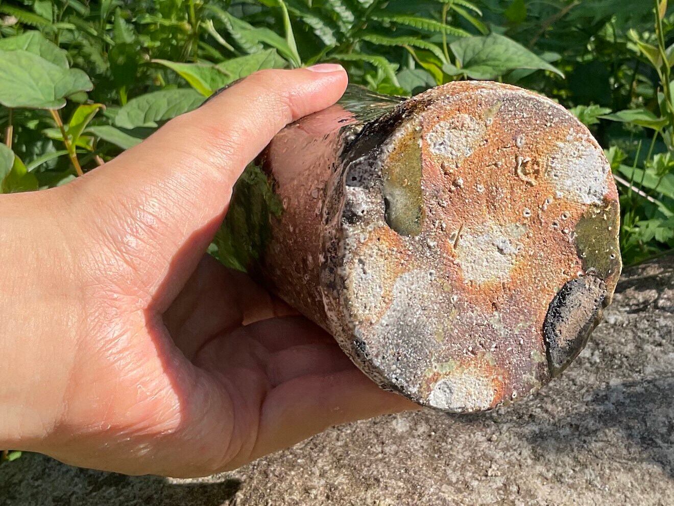 窯変とは、窯を焚いている最中に薪の灰の中にわざと落として(倒して)釉薬の変化を狙います。