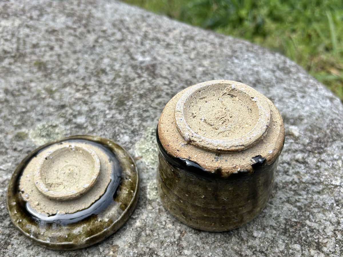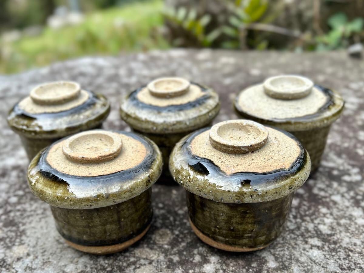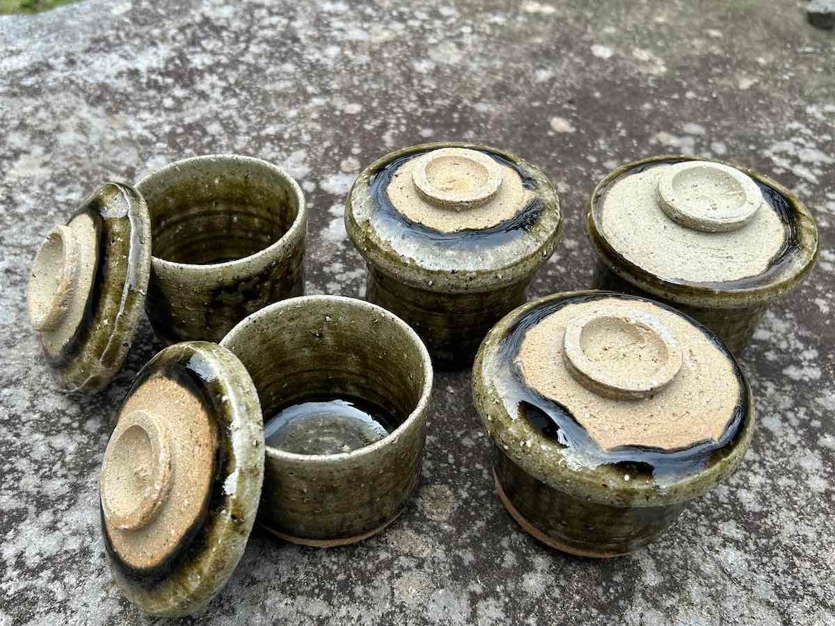 ろくろで一個一個丁寧につくって、灰釉という、伝統的な釉薬を掛けています。