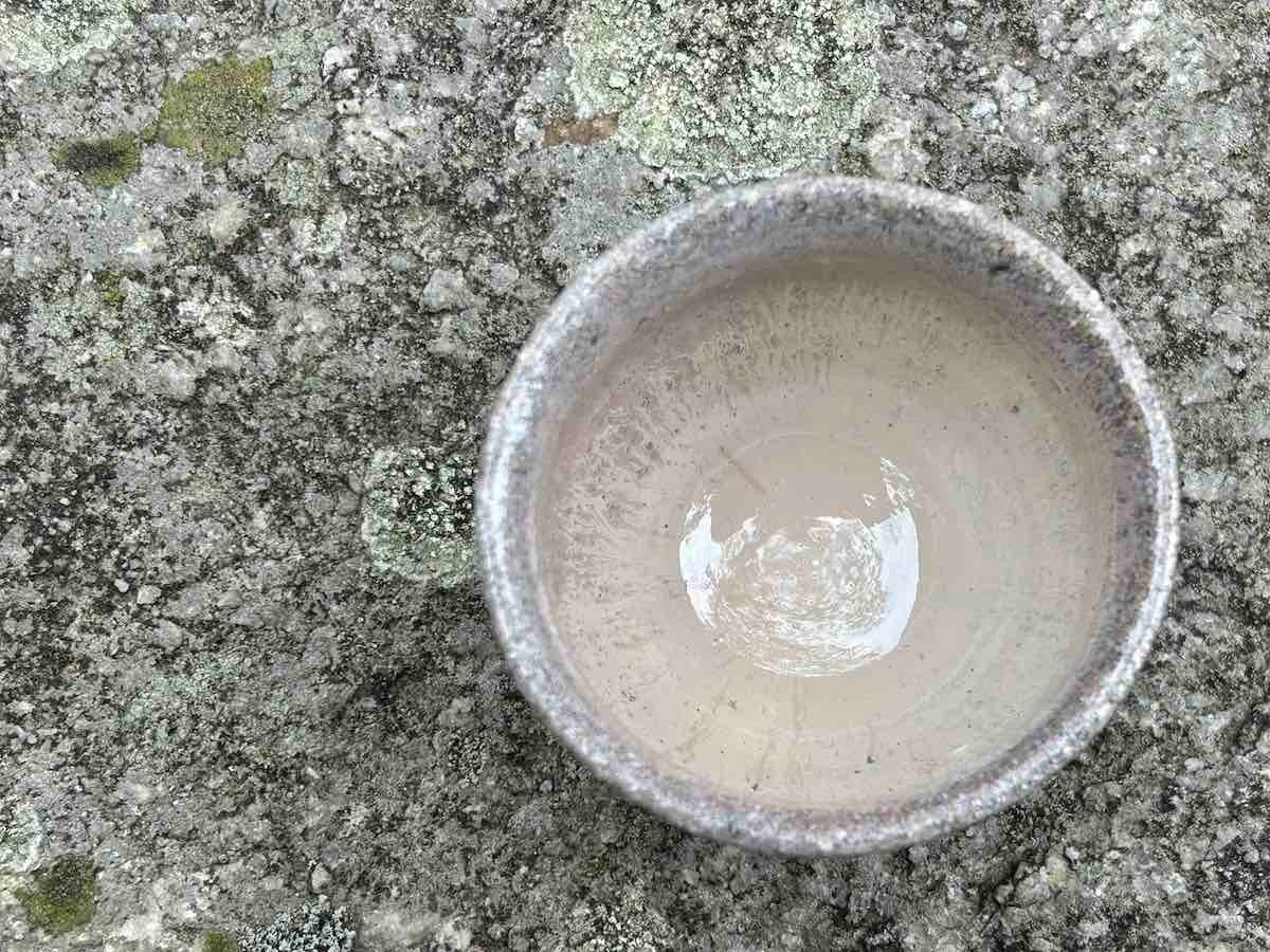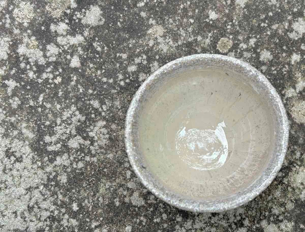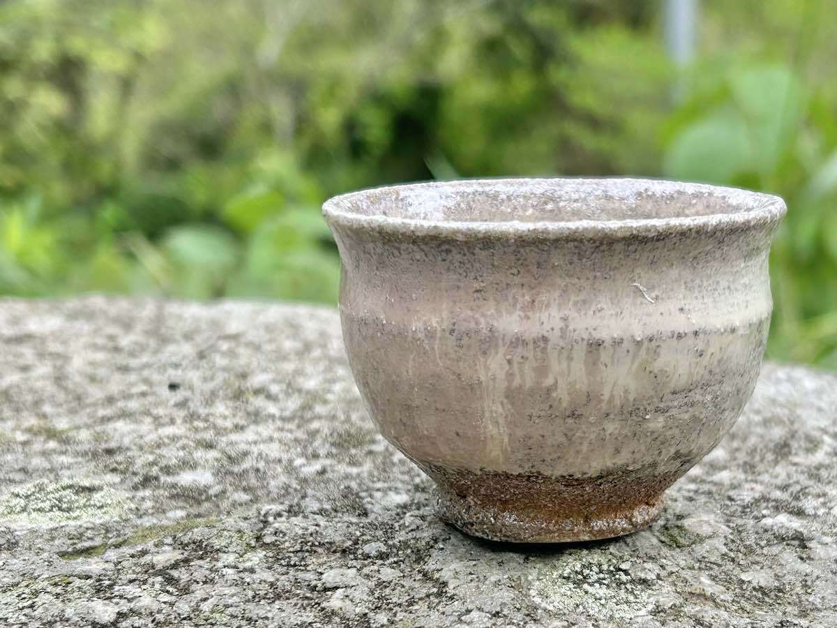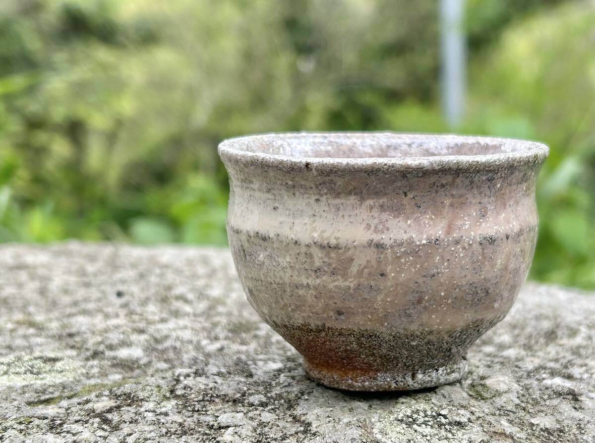 藁灰釉を掛けて、登り窯で高温焼成したぐい呑。